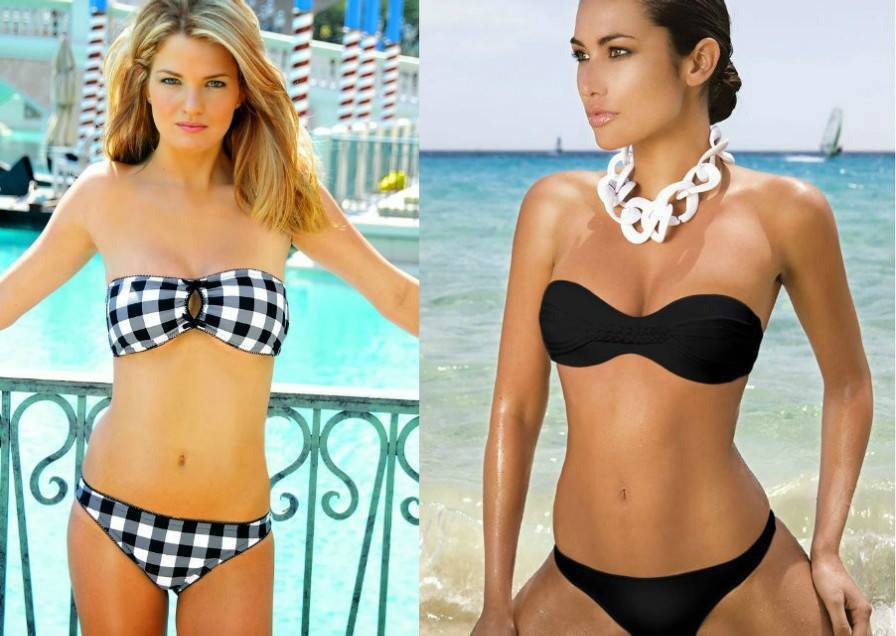 Обладательницам маленького бюста можно смело загорать и купаться в модели бандо. Плотная повязка не смещается и не сползает за счёт силиконовых лент, которые расположены на внутренней части изделия. Иногда бандо выполняется с дополнительной вставкой между грудями, которая играет роль декоративного элемента.