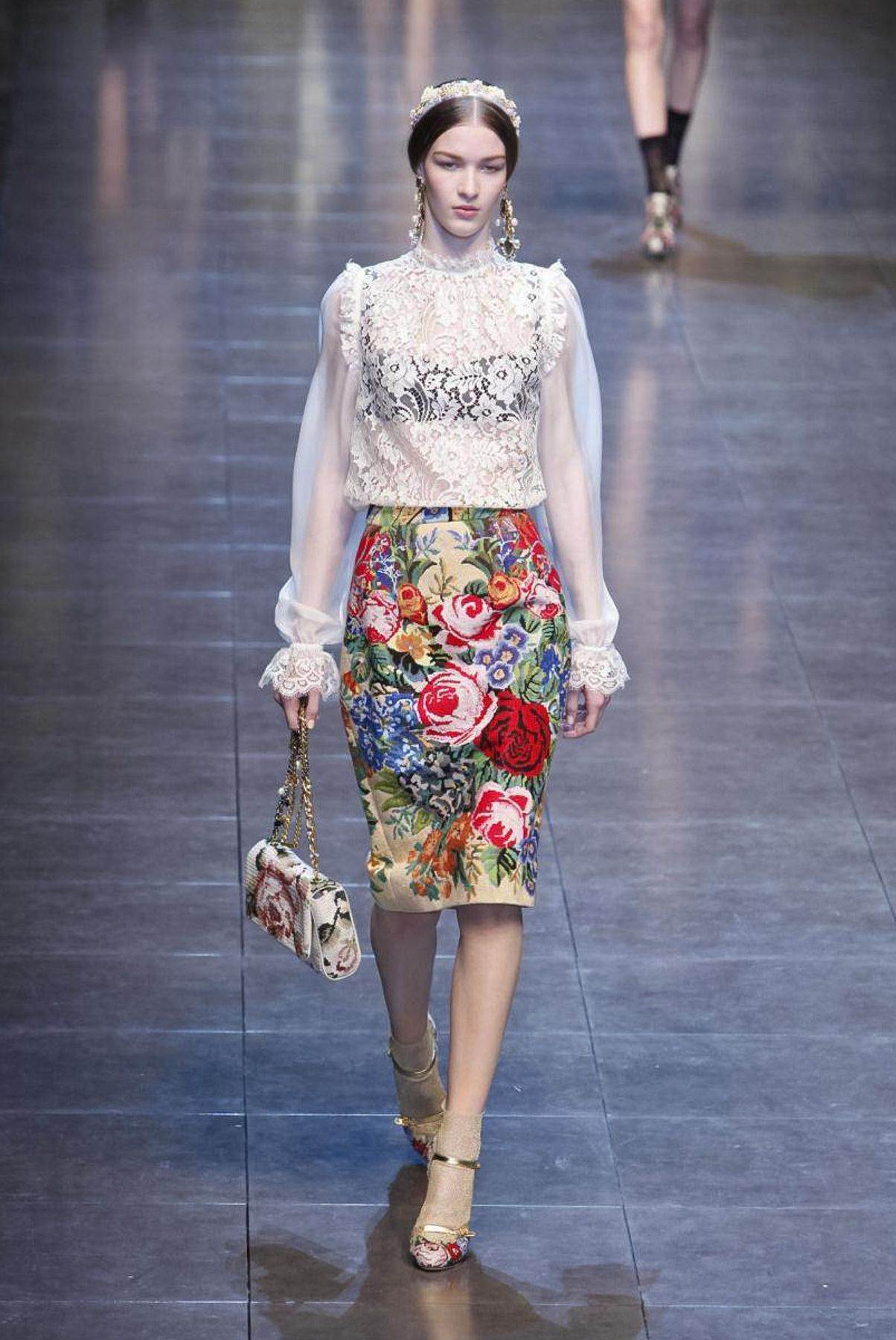 Белый фон подойдёт для стройной женщины с узкими бёдрами. Подобрать к белой юбке подходящий материал для верхней части гардероба непросто. Белый цвет имеет много разнообразных оттенков, поэтому и для блузы следует взять отрез ткани с куска от юбки. При выборе светло-голубого тона шёлковой ткани с цветочным орнаментом, можно для верха купить бирюзовую ткань без рисунка. Это будет неплохим сочетанием для женщин с непропорционально большой грудью. Холодная гамма позволяет казаться стройнее. Выбор теплого розового цвета для верхней части летнего костюма предполагает более тёмный низ. Сочетание будет гармоничным, если на тёмном фоне будут элементы рисунка в розовых тонах. Выбирая шёлковые струящиеся ткани для пошива широких юбок каждая женщина интуитивно старается стать привлекательнее. Этот материал позволяет выделить округлость бедра, не открывая и не обтягивая ног. Традиционная длина «солнца» ниже колена, что в соответствии со старинными русскими традициями делает женщину загадкой. При выборе фасона солнце или полусолнце следует для верха подбирать или обтягивающие блузы, или свободные с открытыми плечами, или глубоким V-образным вырезом горловины. Подобрать для пышного шёлкового изделия можно не только майку из того же материала, возможны дополнения к блузам в виде воланов над грудью. Тогда и выделять линию груди выточками не обязательно. Такие блузки с напуском вполне заменят в жаркие дни бюстгальтеры с функцией push-up. Это ещё одна положительная сторона в выборе шёлковых тканей. Особенность пышных юбок в том, что худеньким они добавляют объёма, пышные формы скрывают. Главное в выборе такого фасона в том, что какая бы ни была фигура, в этом наряде любая женщина будет выглядеть привлекательно. Небольшое дополнение в виде пышного подъюбника, и «солнце» из повседневной юбки превратиться в идеальный вечерний наряд, платье для танцев.