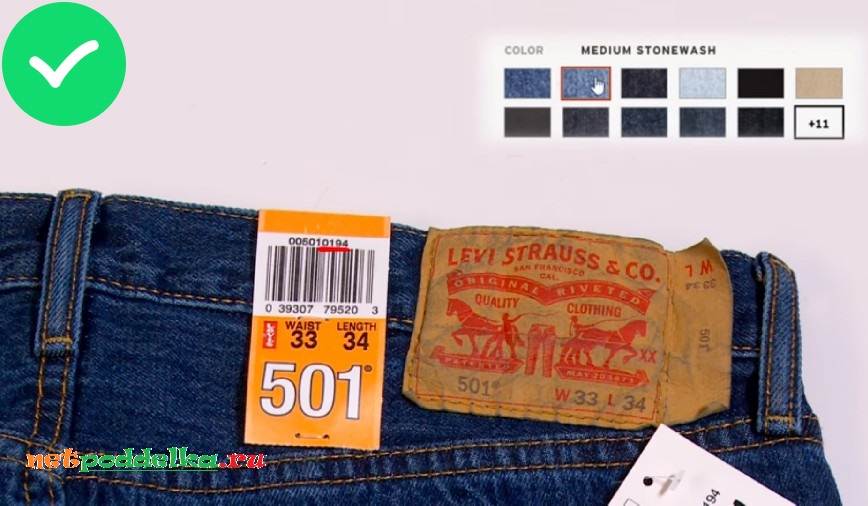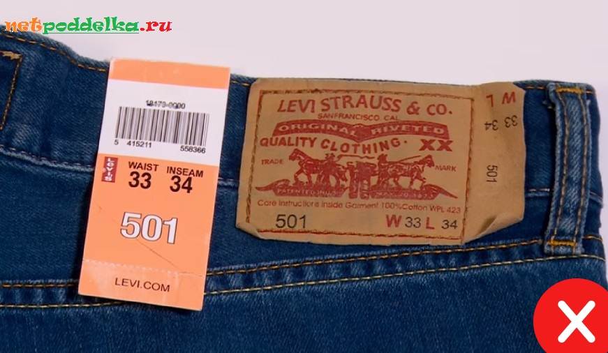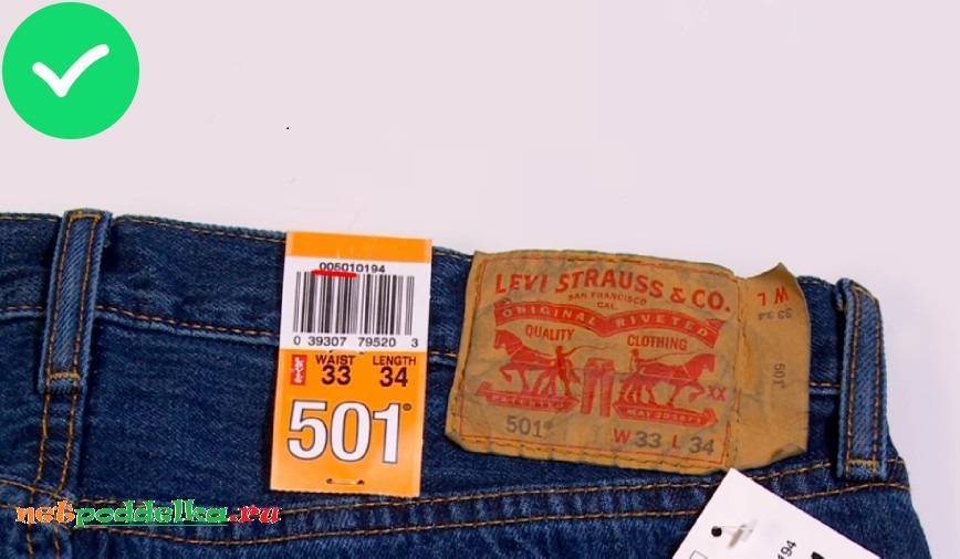 Информация о размере джинс дублируется несколько раз. Мошенники редко повторяют все бирки. Особенно это касается этикетки, которая прикреплена к наружной части джинс. Если ее нет, то перед покупателем Левис подделка, а не фирменные штаны.