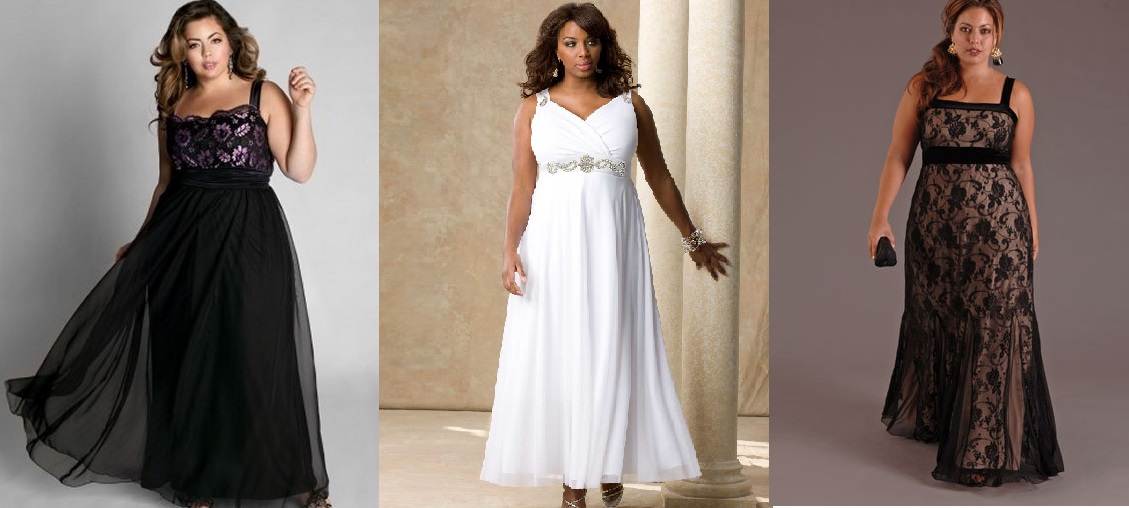 Однотипные балахоны для пышных дам давно ушли в прошлое. Сегодня дизайнеры стараются создать максимально широкую линейку платьев в пол для полных девушек. Огромной популярностью пользуются трапециевидные и расклешенные фасоны, платья-футляр, наряды в стиле ампир, платьица с корсетом.