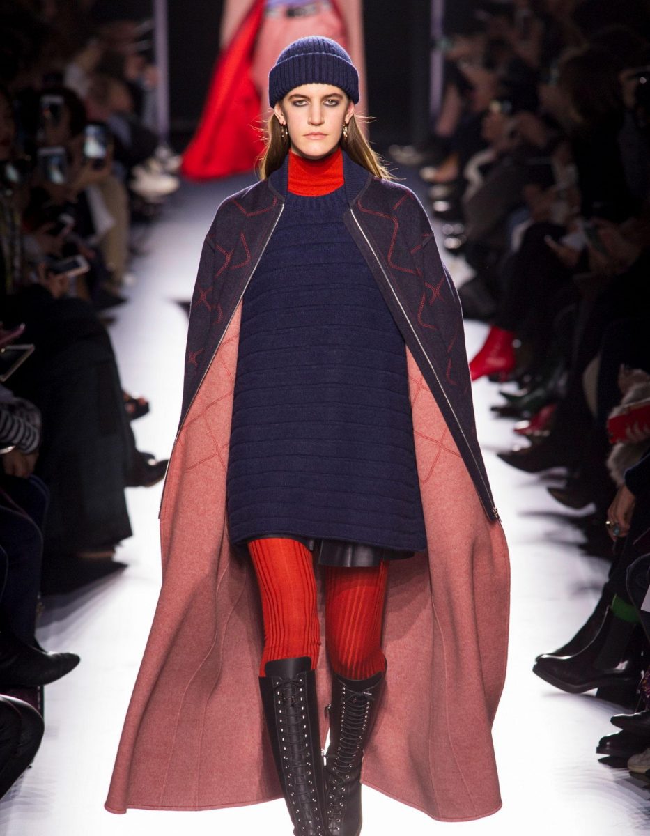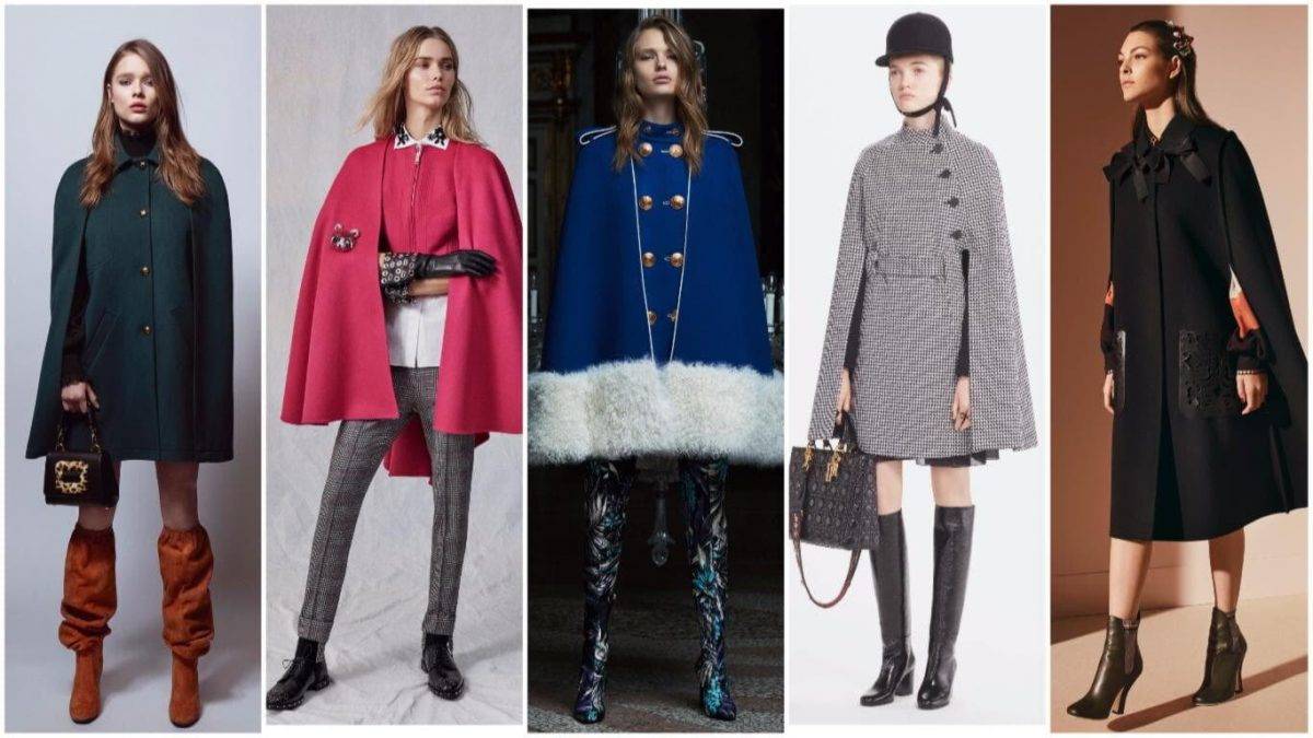 Кейпы прочно укоренились в шкафах модниц еще в 2014. Сейчас продолжается тенденция надменной Англии и на первый план выходят пальто данного кроя на новый виток развития. На модных дорожках в этом году блистали и укороченные варианты кейпа с симметричными пуговицами, и более строгие, но не лишенные шарма длинные силуэты с нотками милитари. Особенной изюминкой среди кейпов в этом году можно считать кейп с небрежным кроем и нечетким очертанием.