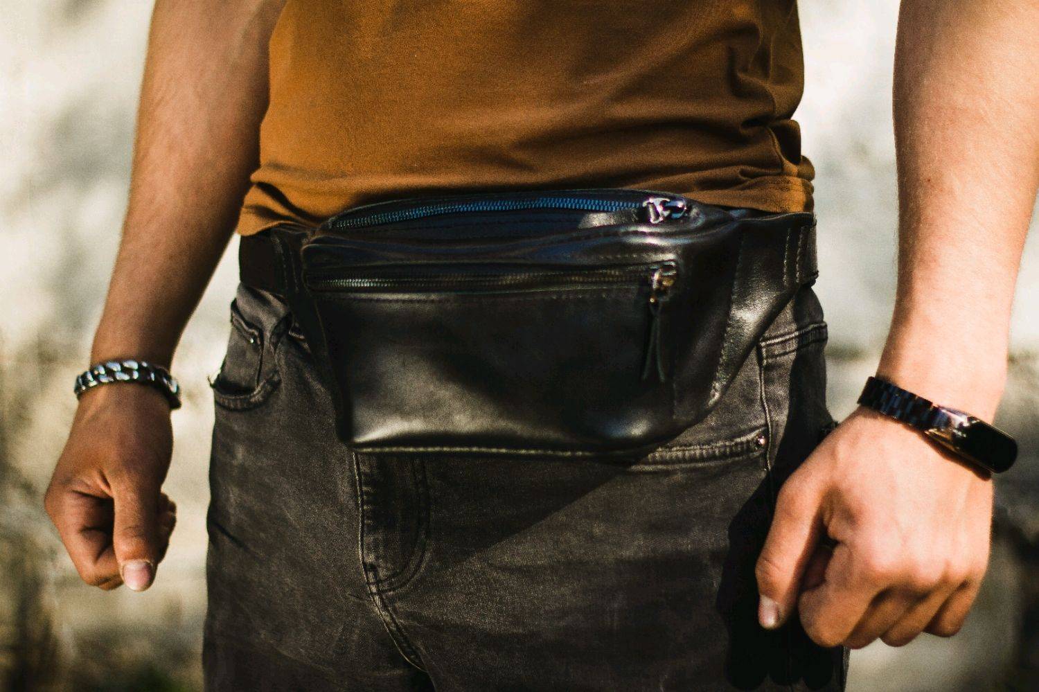 - Поясная модель и так называемые «бананки» которые появились не столь давно. В принципе, это одно и то же, но отличительной чертой поясной вариации можно считать материал – это всегда кожа или ее качественный заменитель в стиле винтаж.