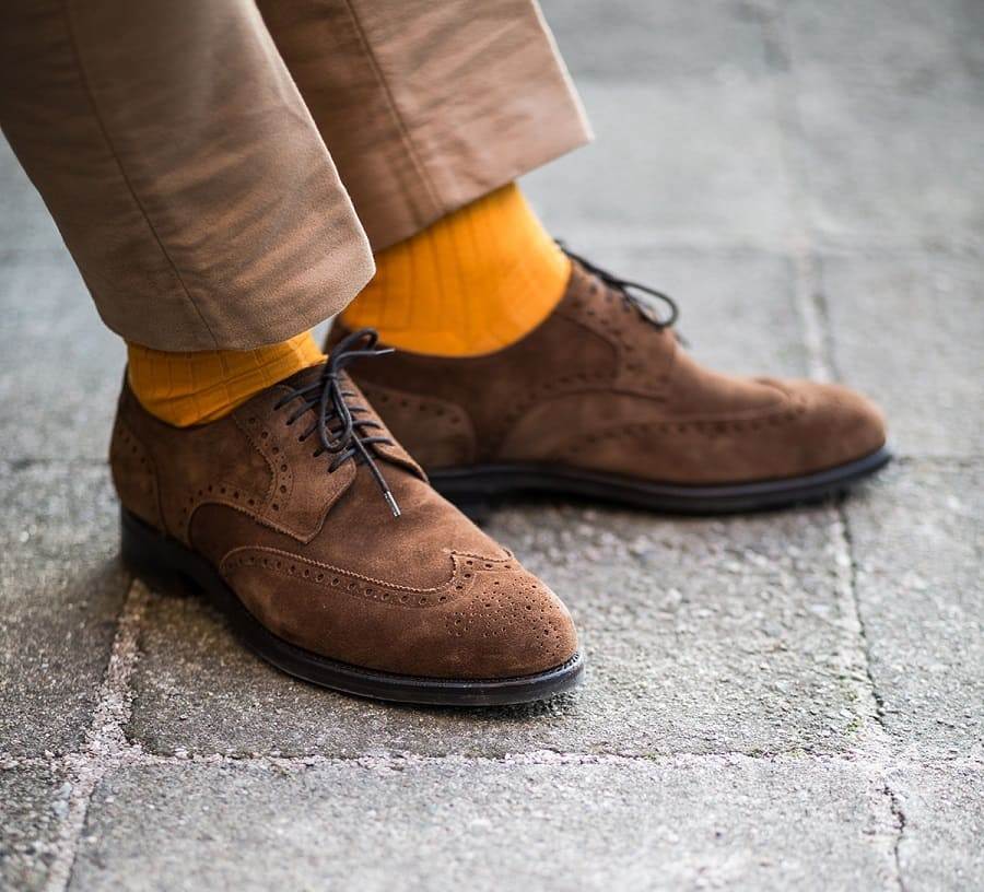 - следует избегать сочетания светлых носков с тёмными ботинками, в частности — белых носков с чёрной обувью;