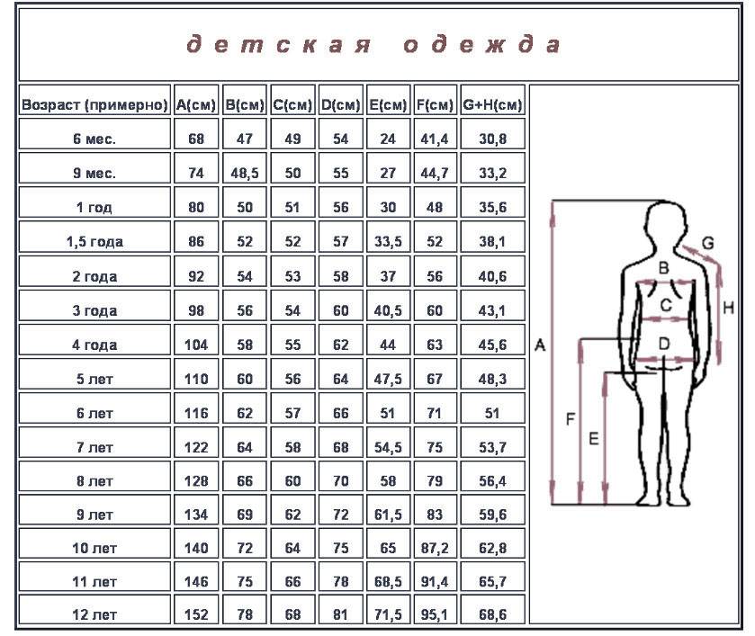 Все детские размеры теплых вещей подбираются по росту