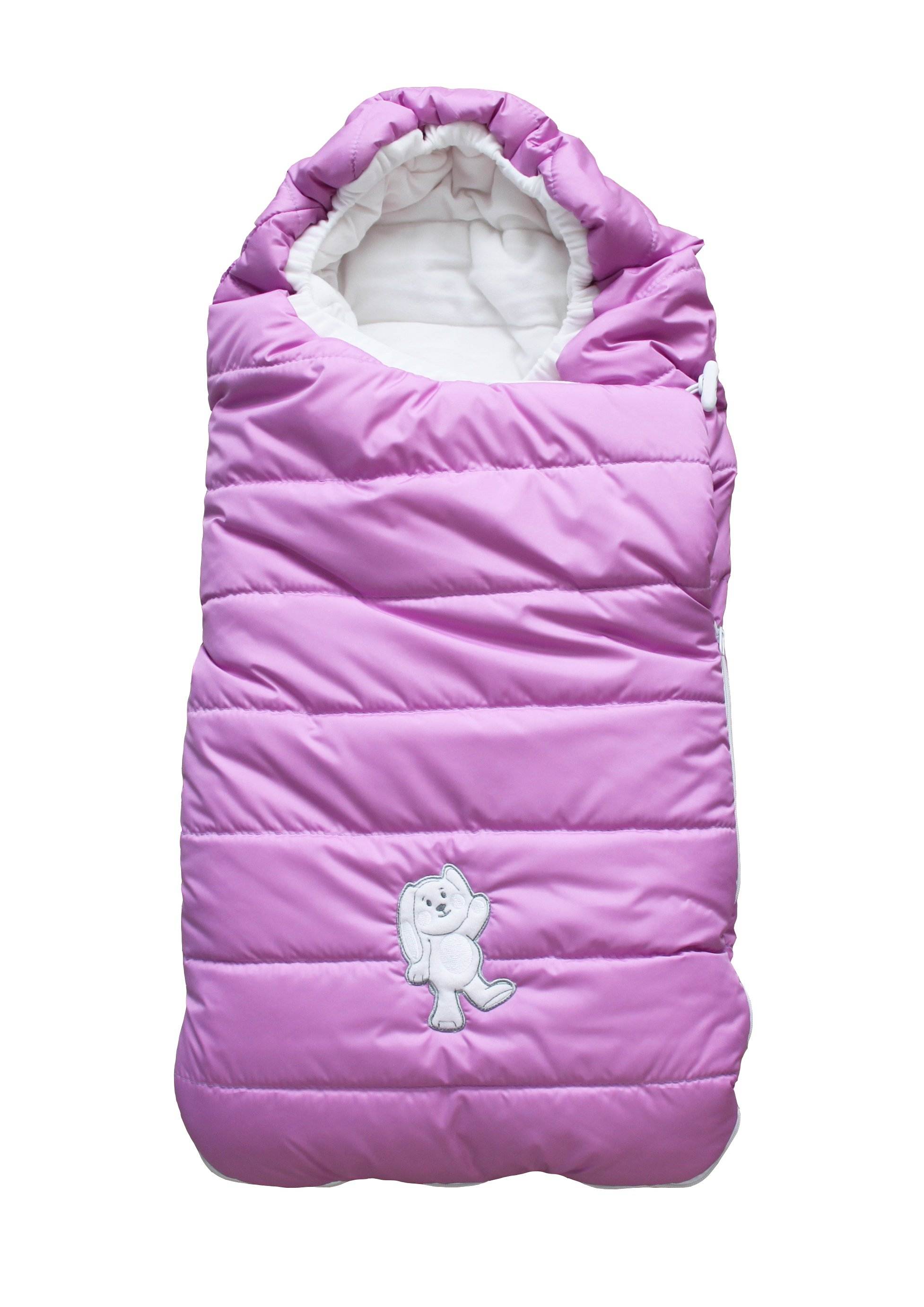 - Утепленный конверт – он служит верхней одеждой для малышей. Обычно предлагаются с прорезями для автомобильных ремней безопасности;