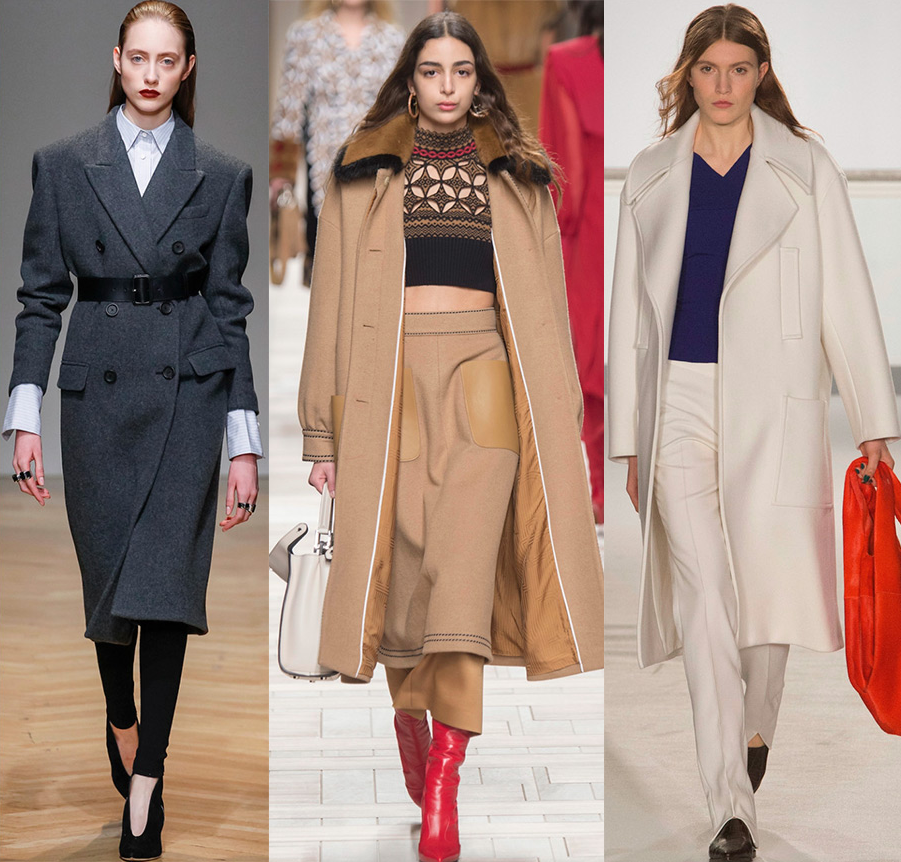 Основное преимущество: они подходят и очень худым девушкам и девушкам с пышными формами. Именно поэтому объёмное пальто – вещь , присутствующая хоть в одной коллекции любого дизайнера. Модными станут удлиненные оверсайз, чуть длиннее колена, при этом они могут иметь массивные плечи. В этом сезоне фасон таких моделей станет мешковатым, а держаться они будут на паре пуговиц и поясе.