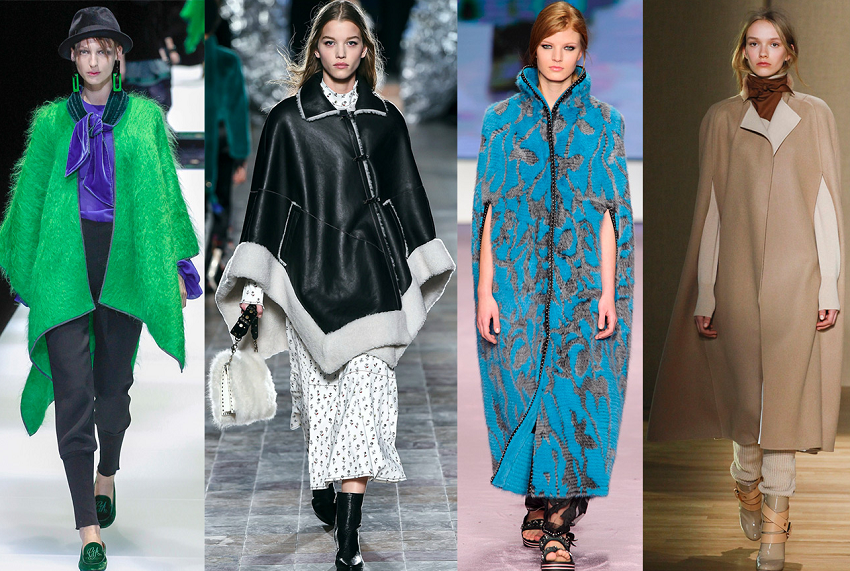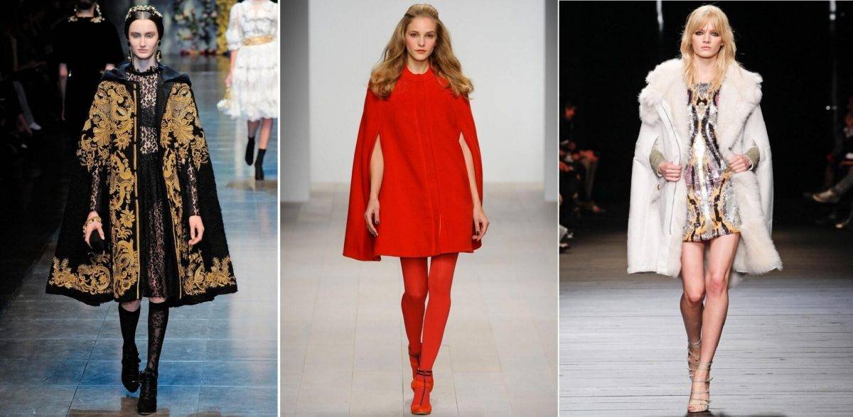 Дизайнеры советуют женщинам отдавать предпочтение широким накидкам. Дополнить образ помогут широкие брюки.