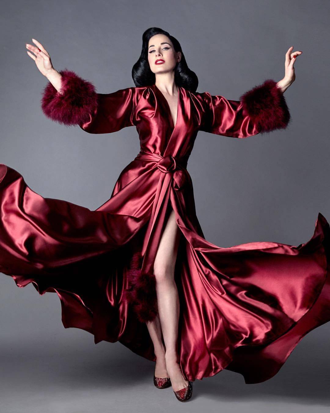 Это нисколько не противоречит первоначальным функциям этого предмета гардероба как утреннего платья для макияжно-гигиенических процедур, занятий домашними делами и приема гостей.