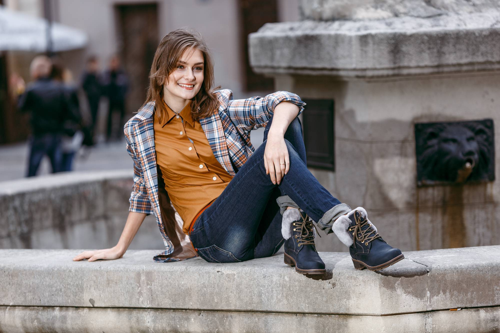 С джинсами отлично выглядит клетчатый и бежевый пиджак. Если говорить о выборе фасона, тут тоже можно экспериментировать.