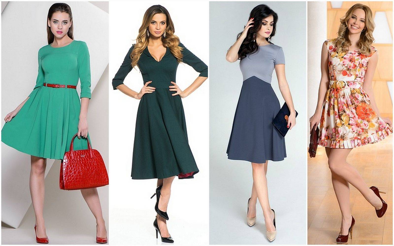 При создании моделей дизайнеры придумали такую хитрость, как вставки из другого цвета. Даже при телосложении в форме «яблоко» можно использовать фасоны облегающие, футляры, с расклешенной юбкой.