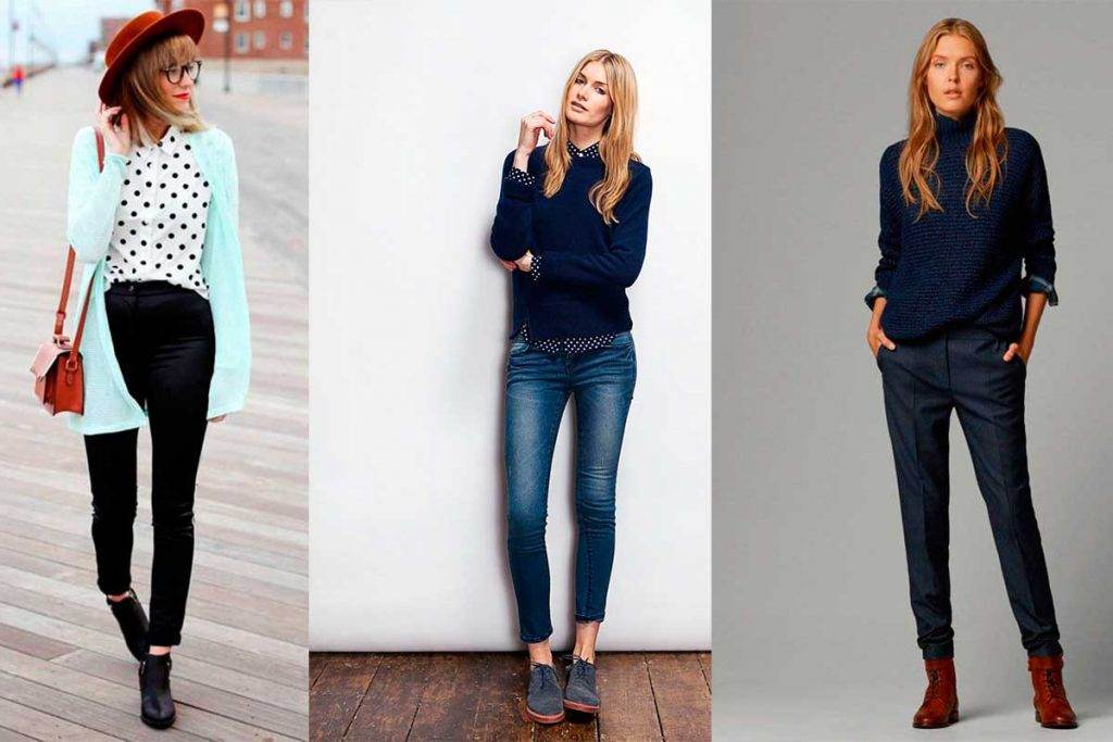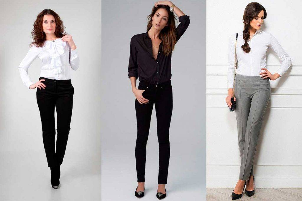 Брюки можно выбирать двух типов: классические брюки со стрелками длиной до середины каблука или зауженные брюки длиной до щиколотки