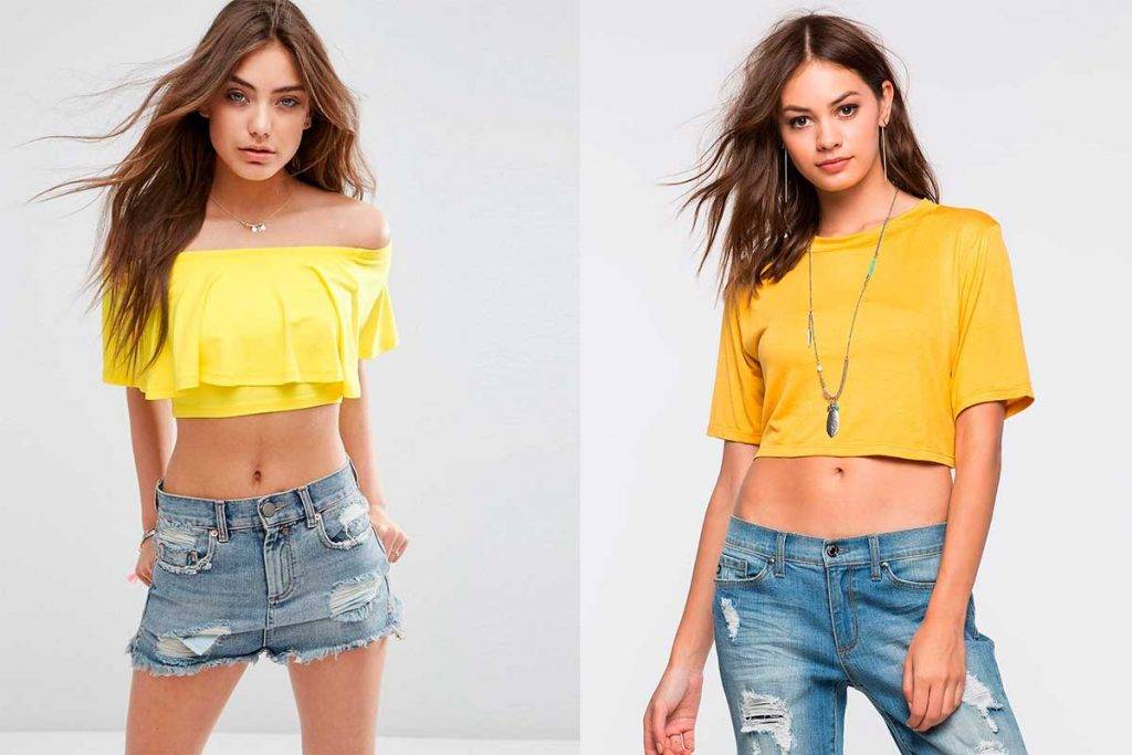 Обладательницам фигуры прямоугольник следует с осторожностью отнестись к обтягивающим коротким топам, особенно с узкими бретельками
