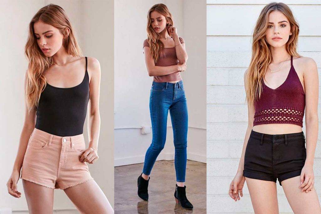 Если речь идёт о джинсах, можно остановить выбор на любых моделях, в том числе расклешённых. При выборе шорт также преград не существует. Любая длина и ширина будут смотреться гармонично.
