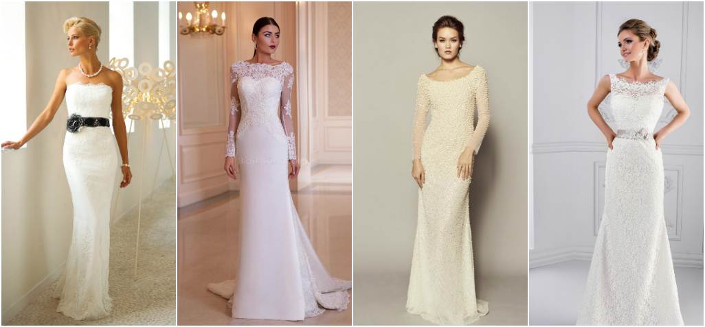 Прямое свадебное платье – это может быть классическое платье-футляр, либо легкое струящееся платье, которое не расширяется ни к низу, ни к верху, создает слегка сдержанный и элегантный образ.