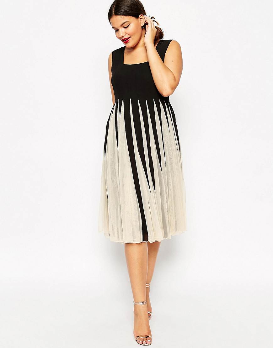 Самое сложное – длина. Ее нужно подбирать исключительно индивидуально. Макси уместно лишь в вечерних струящихся платьях, желательно длиной ниже пола. Макси может укоротить силуэт, миди и подавно. Лучшая длина для пышных девушек с небольшим ростом — в районе колена: чуток ниже или выше.