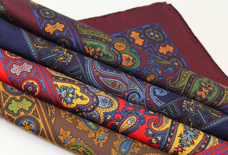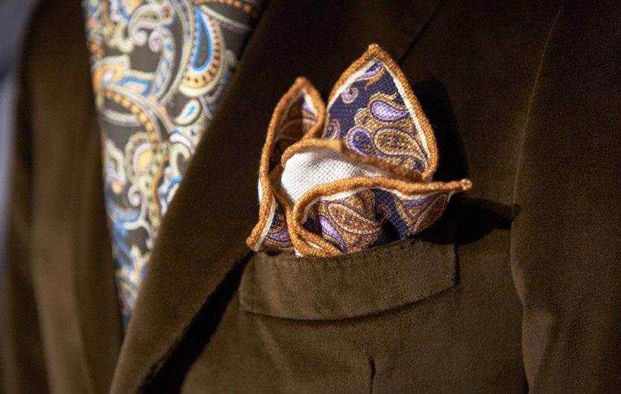 Узор на платочном аксессуаре должен гармонировать с орнаментом галстука или сорочки.