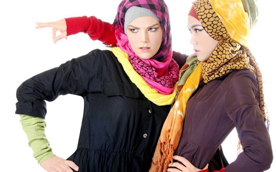 - Накрываем голову шарфом/платком с затылка, а концы выводим наперед — голова при этом должна быть полностью покрыта платком.