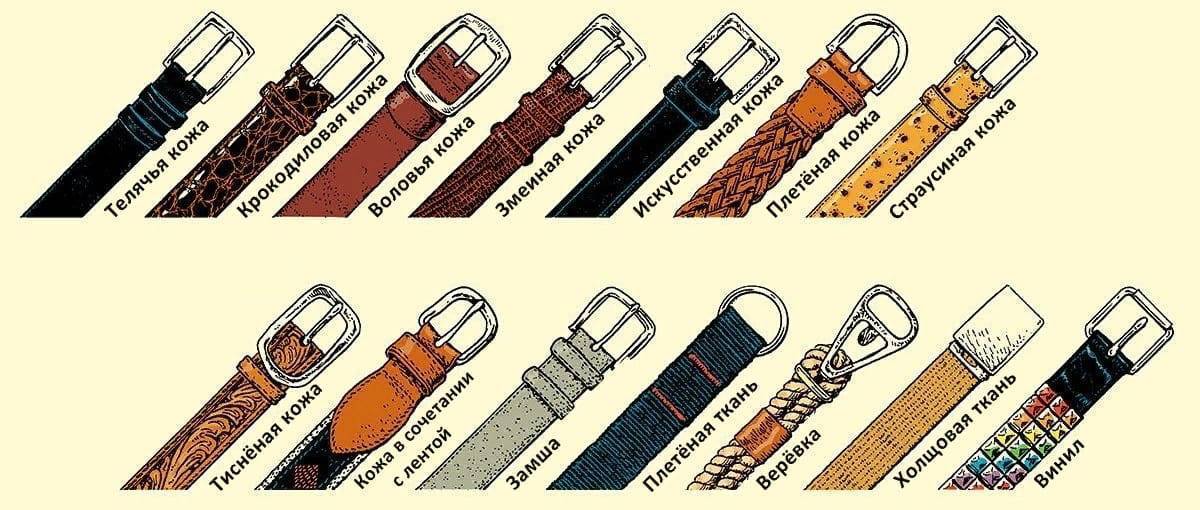 Самый универсальный вариант – кожаный ремень. Пояс из текстиля уместен для чиносов или карго