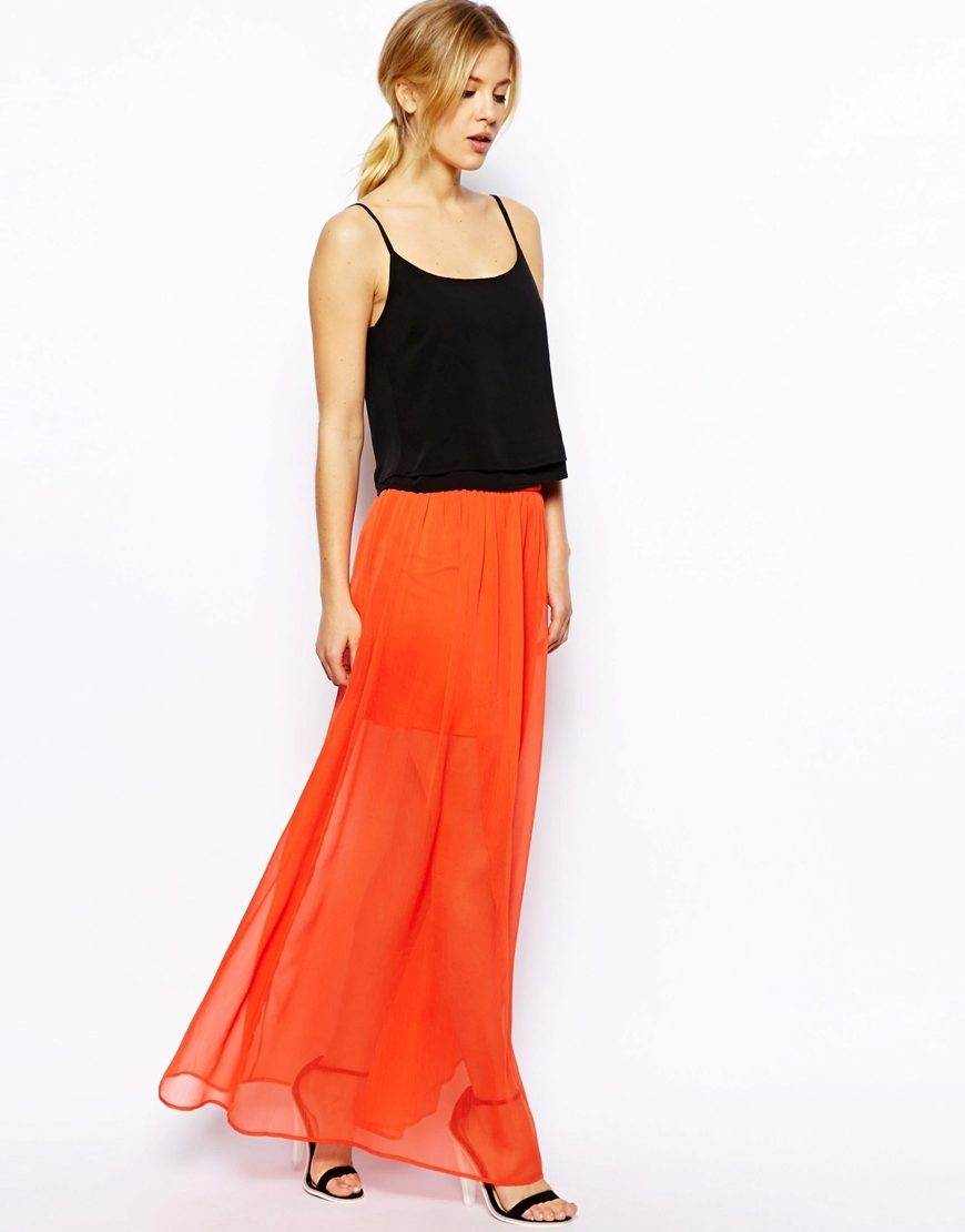 Не знаете, что надеть в театр? Для этих случаев, в гардеробе должна быть макси-юбка — волнистая, немного расклешённая, которая, в комплекте с зауженным верхом, сделает из вас утонченную модницу.