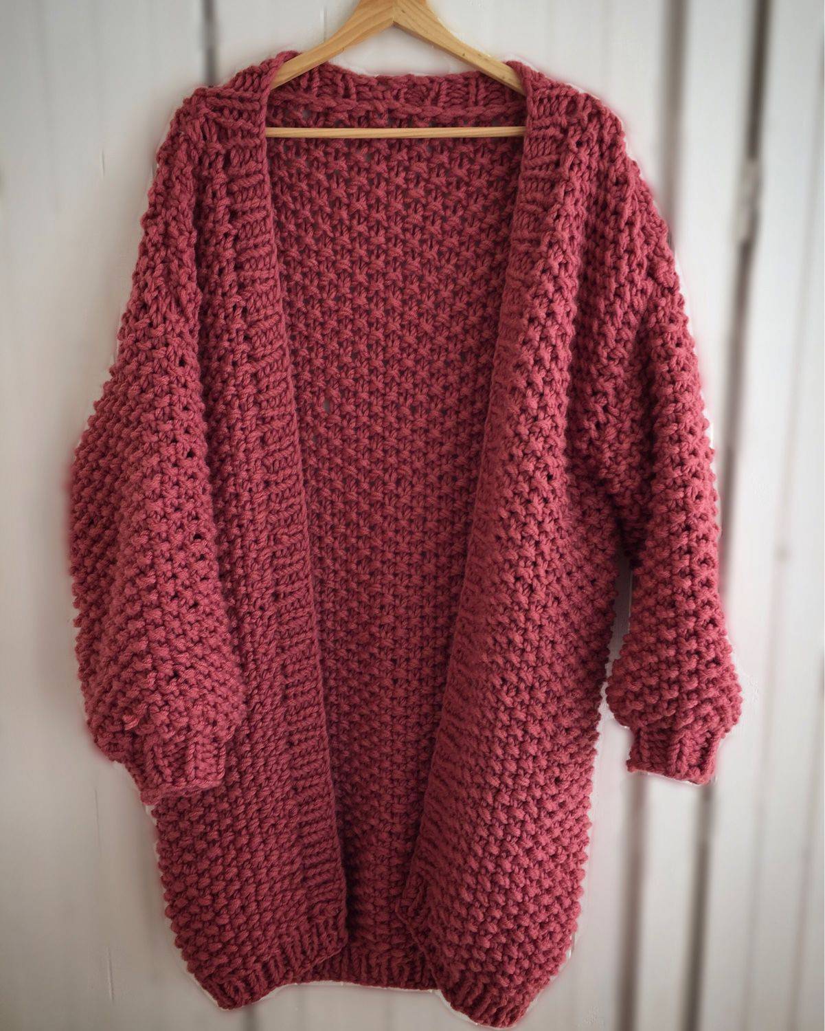 Резинка — представлена несколькими видами. Модели кардиганов получаются немного объемными, оригинально выглядят, хорошо тянутся. Вязать надо свободно, узор будет двухсторонним, поэтому для него понадобится много пряжи. Чтобы не вышел перекос, рекомендуется вывязывать наружные петли через заднюю стенку, а внутренние — через переднюю.