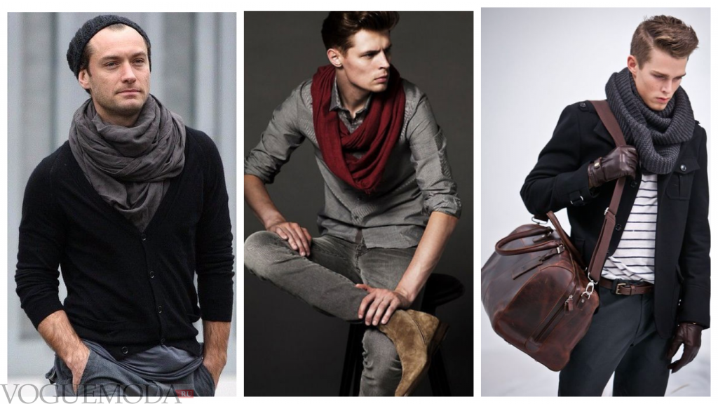 В основном, мужчины носят шарфы в холодное время года. Комплект: шарф-снуд, куртка, джинсы и ботинки, самый актуальный и востребованный, среди молодежи.