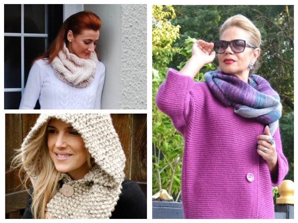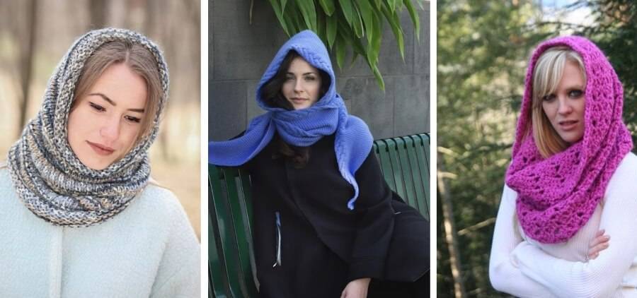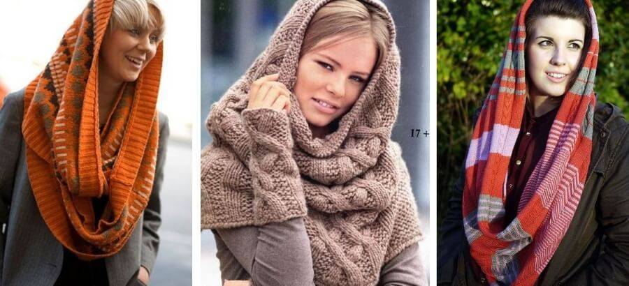 - Широкие шарфы – используют как капюшон, шапку и шарф.