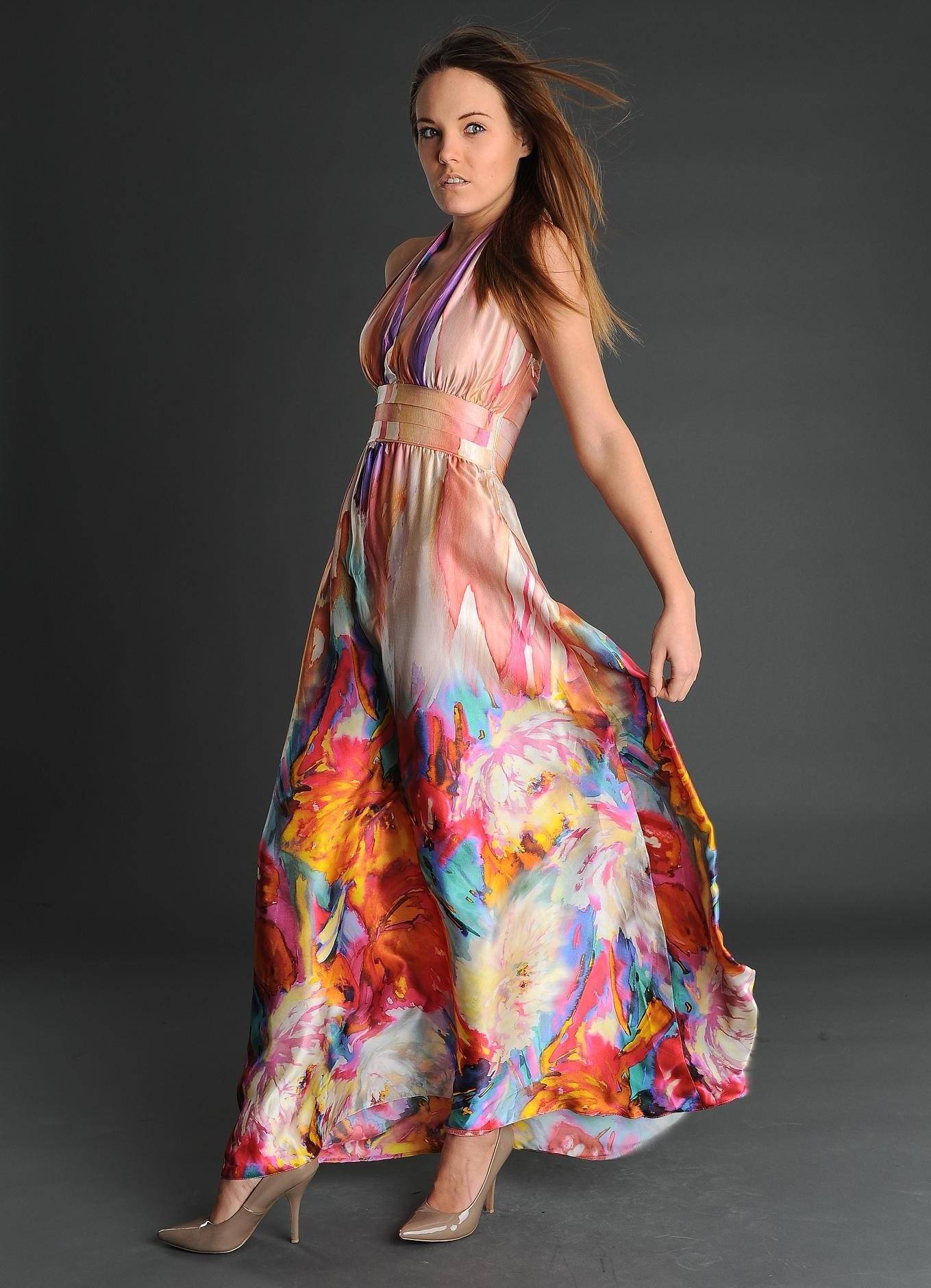 Они отлично подойдут для вечерних прогулок по городу в летнюю пору – образ женщины преображается, она просто источает нежность. Великолепно смотрятся наряды из шелка с неброским декором мелкими деталями, и даже самый экстравагантный рисунок не сможет убавить шарма и обаятельности: