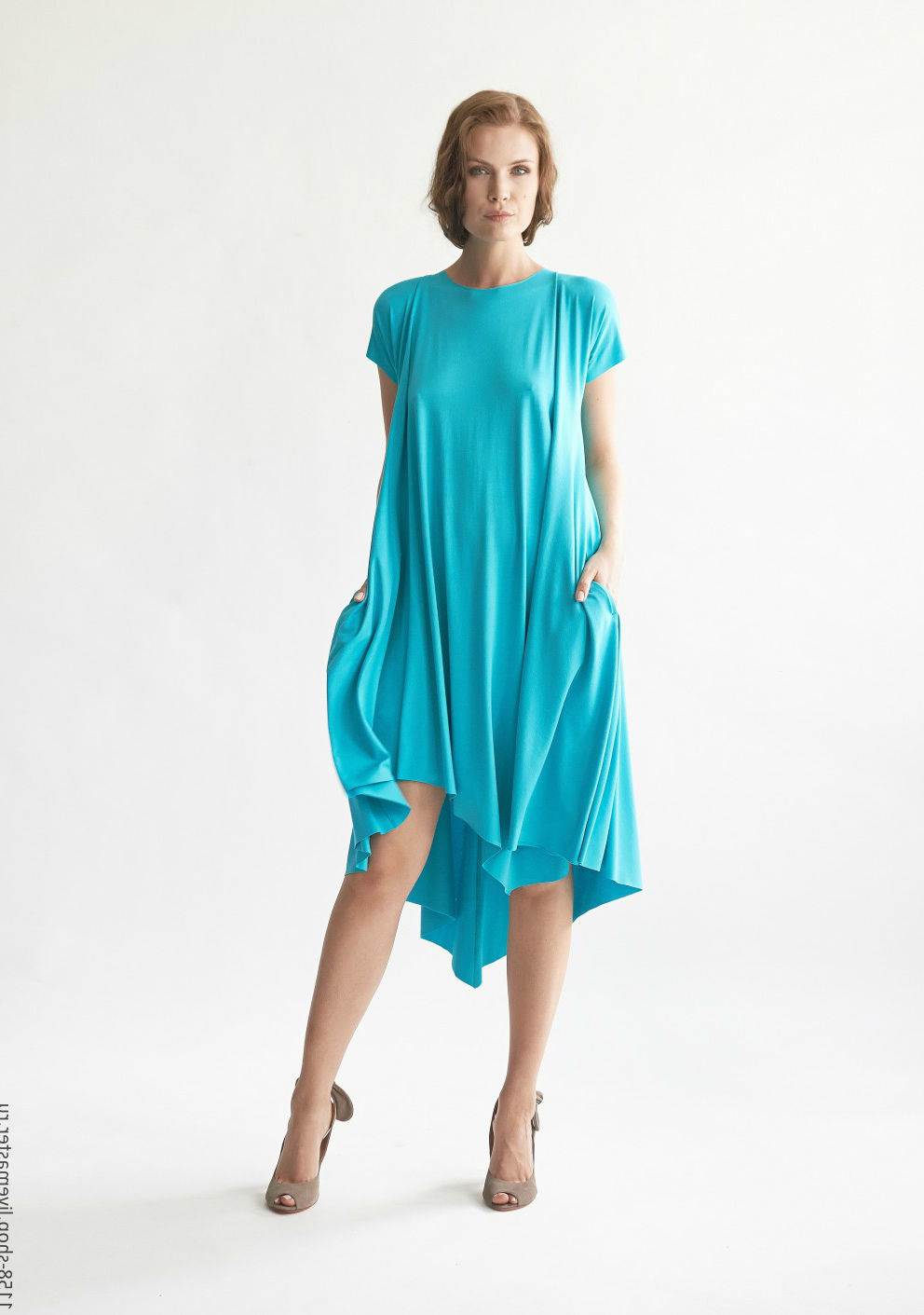 Можно смело покупать такие красивые фасоны платьев к спортивной обуви, к туфлям и босоножкам на высоких каблуках. Они к лицу едва ли не всем без исключения. Фигура смотрится выигрышно благодаря свободному крою. Поясок выглядит скромным и неброским акцентом на талии. Так что лишние килограммы прекрасно скрадываются