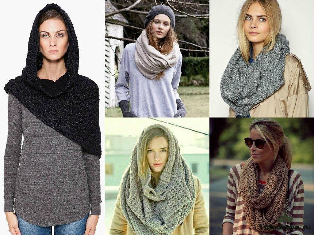 Важно! Для особенно утонченных модниц модельеры придумали меховые и шелковые снуды. Конечно, эти вещи можно отнести к предметам роскоши, но именно они позволяют создать по-настоящему шикарный и богатый лук.