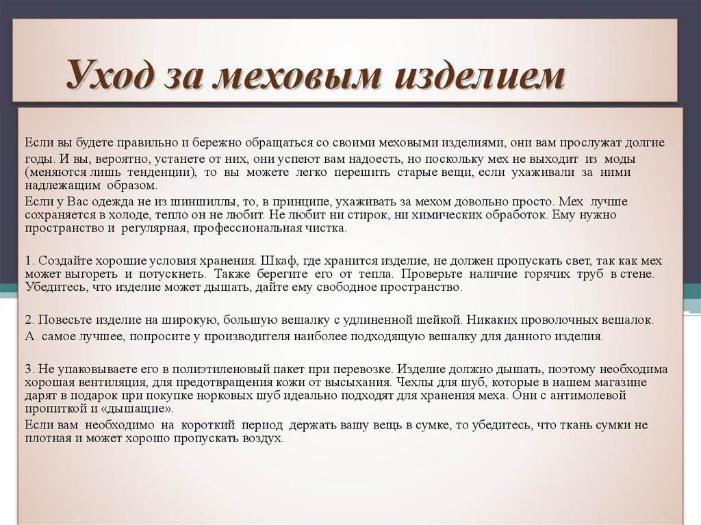 Внимание! Благодаря надлежащему уходу за меховыми изделиями можно сохранить их внешний вид и продлить срок эксплуатации. В случае соблюдения советов и хорошего обращения, изделие может сохраниться надолго и будет радовать своего владельца