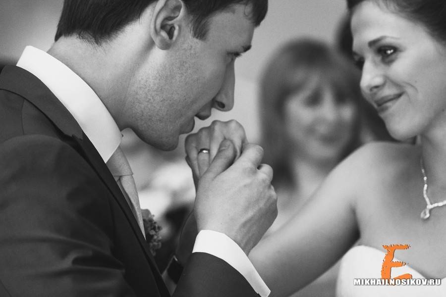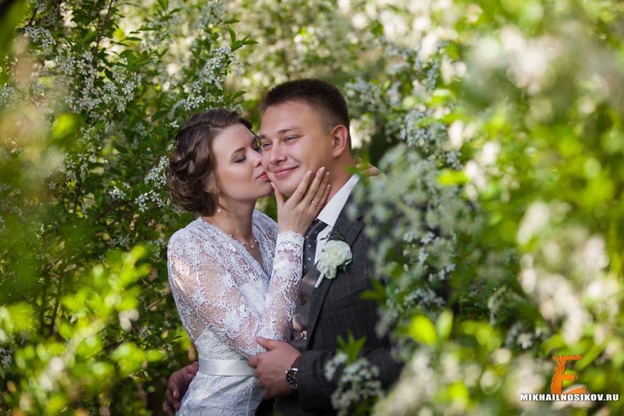 В свадебной фотографии съёмка на максимально открытой диафрагме, которую позволяет установить ваш объектив (для достижения малой глубины резко изображаемого пространства), делает снимки «вкусными». Наведите на резкость героев, тогда фон получится размытым. Будьте аккуратны, следите за тем, что (кто) в фокусе.