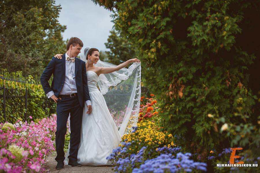 Практика показывает, что оптимально планировать длительность съемки на 6-8 часов. Начало – от момента одевания невесты, дальше – выкуп, регистрация и свадебная прогулка. Логично будет завершить фотосессию на банкете после первого танца.