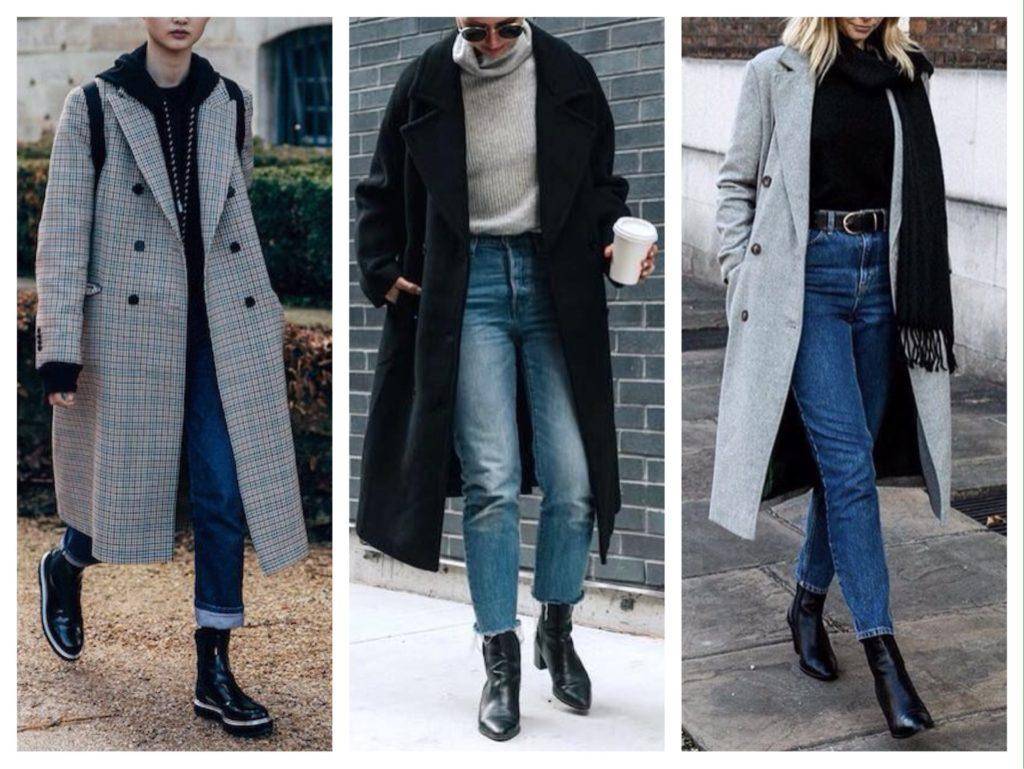 С чем носить брюки зимой определяет их модель. Распространенные варианты комбинирования утепленных джинсов: