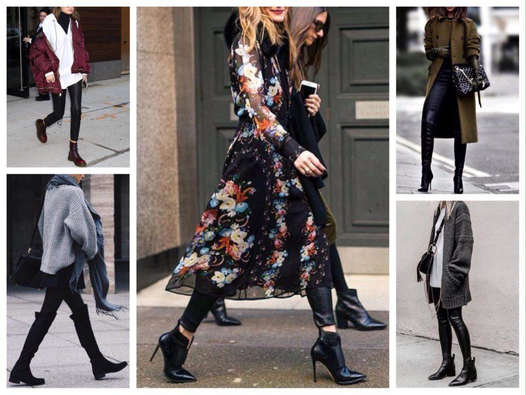 Леггинсы нельзя назвать брюками, поэтому и одежда, с которой их следует носить, другая. Идеальный вариант к ним – удлиненные свитера. Неплохо они смотрятся с короткими платьями, летящими моделями, юбками, шортами и длинными пиджаками, как на фото. При выборе верхней одежде, предпочтение отдают пуховикам и пальто.