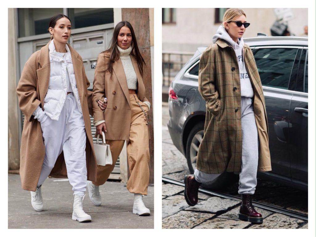 Широкие штаны комбинируется с облегающими вещами: майками, топами в спортивном стиле. Подходят толстовки и ветровки по фигуре. Облегающие модели лучше смотрятся с объемными толстовками, худи и свитшотами. Если на спортивных штанах есть яркий принт, то верх должен быть однотонным.