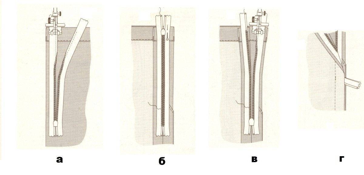 Вшиваем в задний шов молнию. Сметываем и прострачиваем боковые швы.