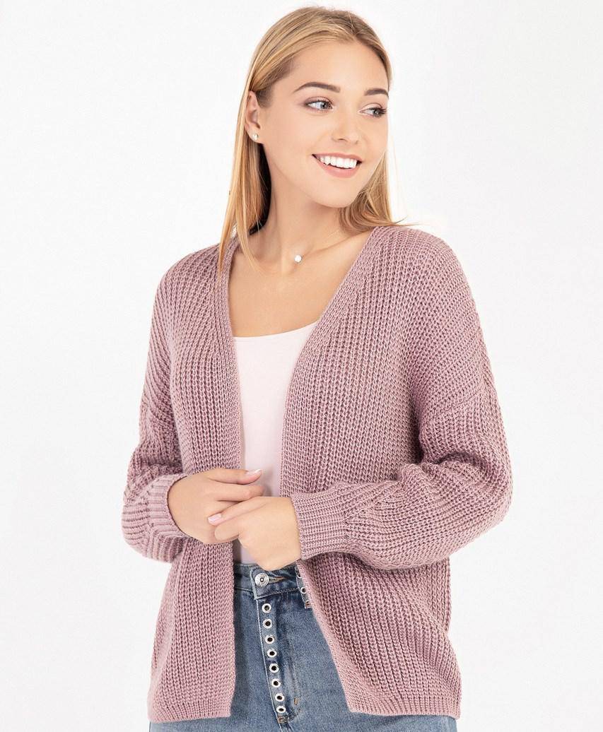Чтобы придать кардигану изюминку, попробуйте связать его с использованием узорной техники из крупных кос. Такая модель подойдет для любого типа фигуры и придаст образу женственности.