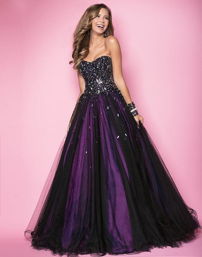 - Классика выпускных платьев – юбка-клеш. Вариант подойдет выпускницам с широкими бедрами. Его часто комбинируют с многослойной структурой разной длины.