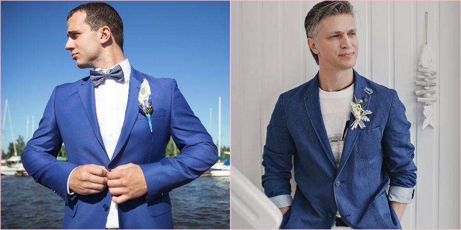 Стилист советует: для весенне-летней свадьбы днем лучше всего подойдет синий костюм, а после наступления темноты и в осенне-зимний период элегантнее будет смотреться темно-синий, черный или бордовый.