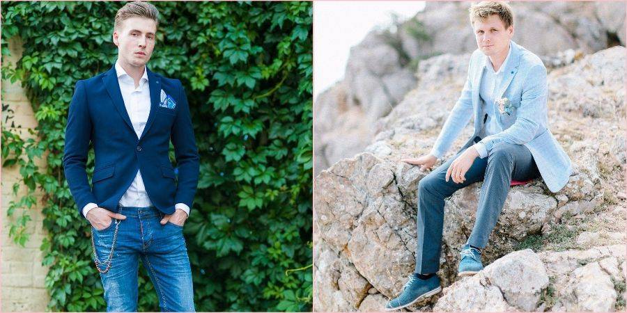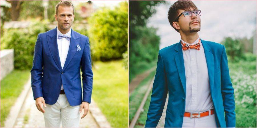 Почему-то дресс код на свадьбу для мужчин всегда ассоциируется со строгим официально-деловым костюмом. Однако это вовсе не обязательно. Костюм может комбинировать в себе, к примеру, яркие брюки, пиджак темного оттенка и футболку-поло нейтрального цвета. Главное, чтобы все предметы одежды гармонично сочетались друг с другом.
