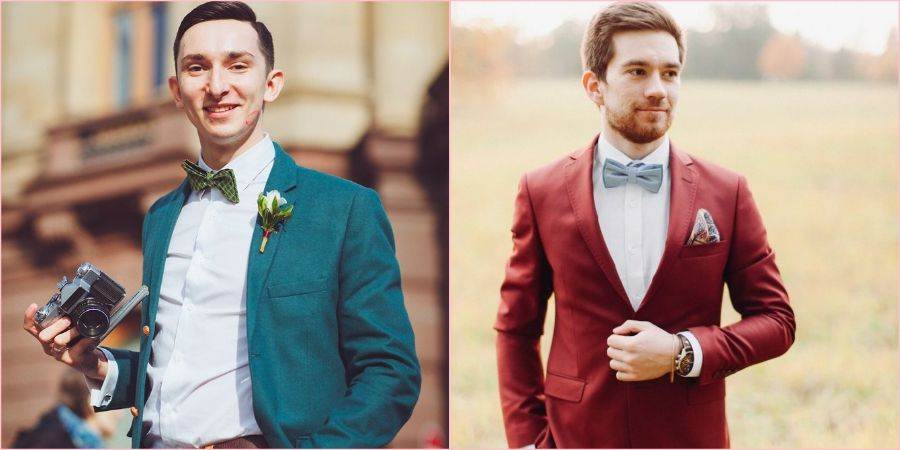 Кто сказал, что яркой и привлекающей внимание может быть только невеста? Жених также будет роскошно выглядеть в стильном и даже немного озорном наряде, если это не перечит образу его возлюбленной.