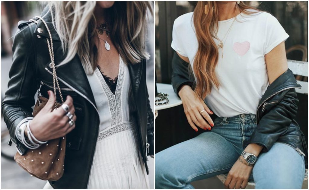Кожаная куртка также хорошо сочетается с легкой одеждой. Это идеальный вариант для прохладного лета