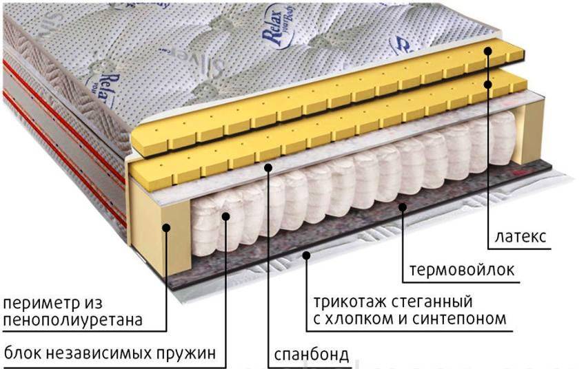 Такая конструкция облегчает адаптацию поверхности к переменному давлению, поэтому хорошо подходит для двуспальной кровати, на которой спят два человека с разным весом.