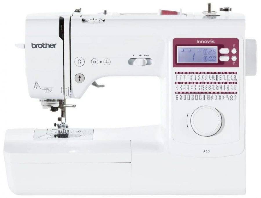 Brothers Innov-is NV1800Q. Полноразмерная модель, предлагающая 232 разновидности строчек. Оснащена жидкокристаллическим экраном, сенсорным управлением, даже опцией создания и сохранения в памяти эксклюзивных стежков для декорирования изделий.
