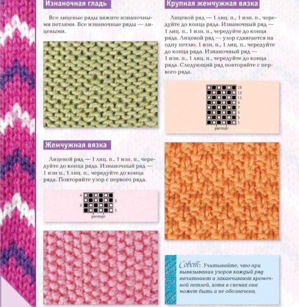 Лицевая гладь: 1-й ряд – лиц., 2-ой р – изнаночными, 10 п / 15 р = 10 / 10 см.