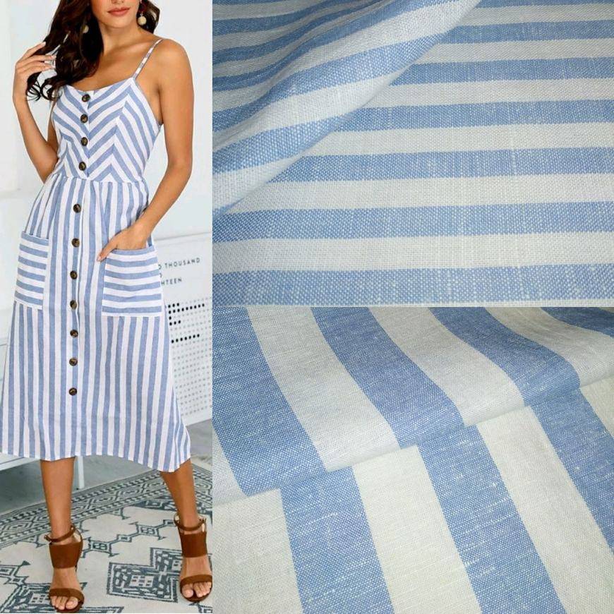 Сейчас можно приобрести платья в полоску из льна разных оттенков. Полоска — весьма популярный узор на этой ткани.