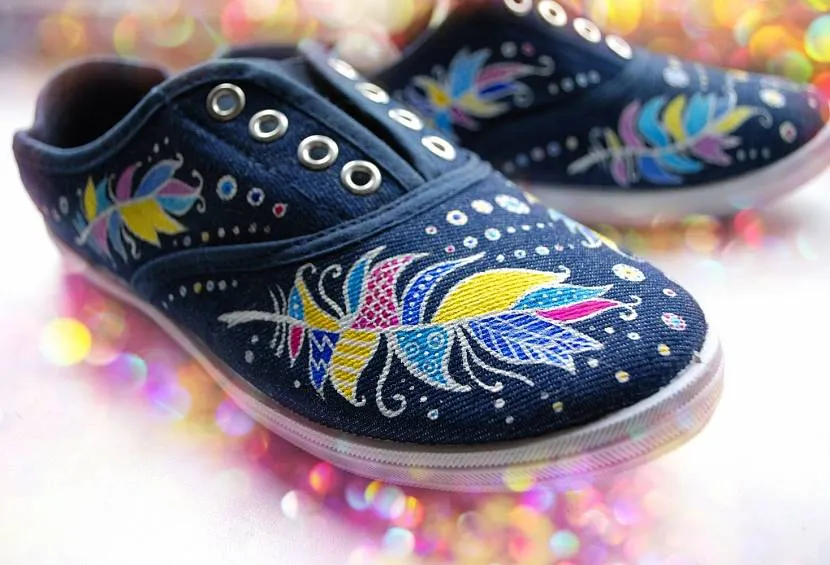 Стильные кеды с верхом из джинсовой материи, разукрашенные акриловыми красками Источник m.alibaba.com