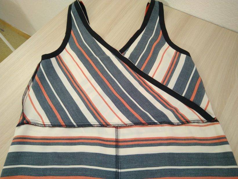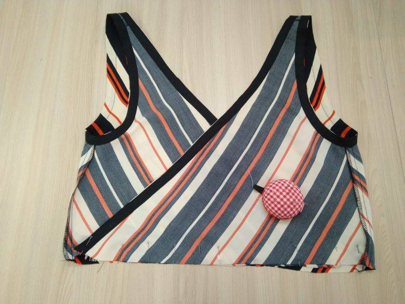Обрабатываю косой бейкой вторую пройму и вырез горловины.