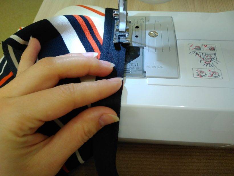 Концы резинки сшиваю между собой внахлест на швейной машинке.
