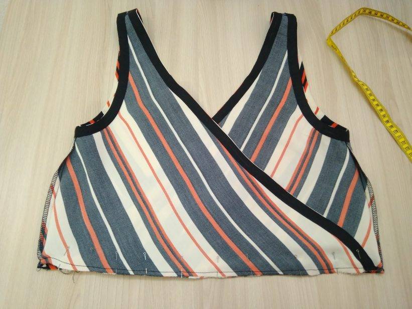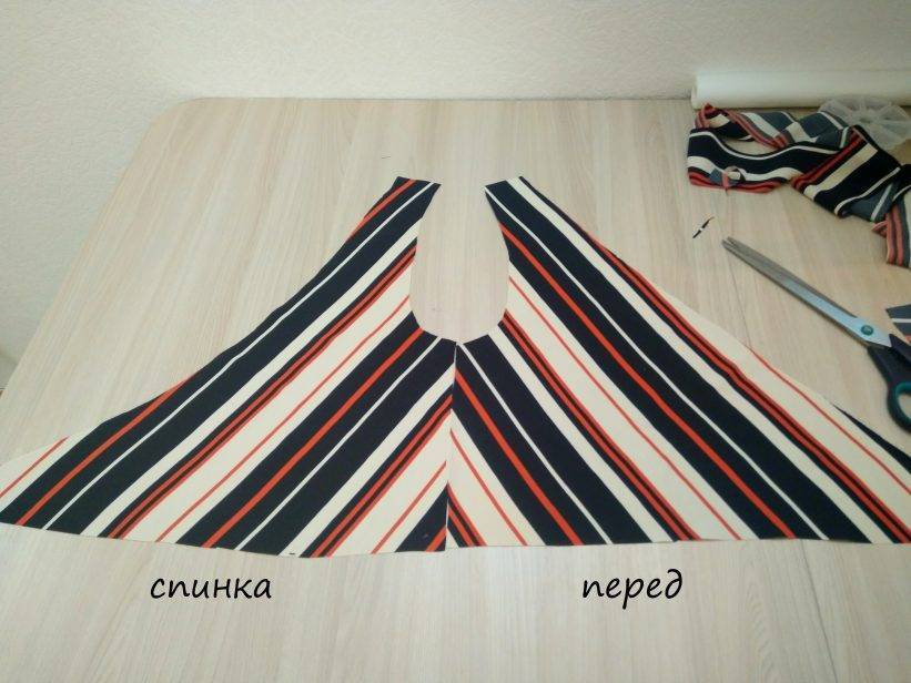 Измеряю срез проймы сантиметровой лентой сантиметровой лентой по полочке и спинке, отрезаю косую бейку по полученному отрезку.
